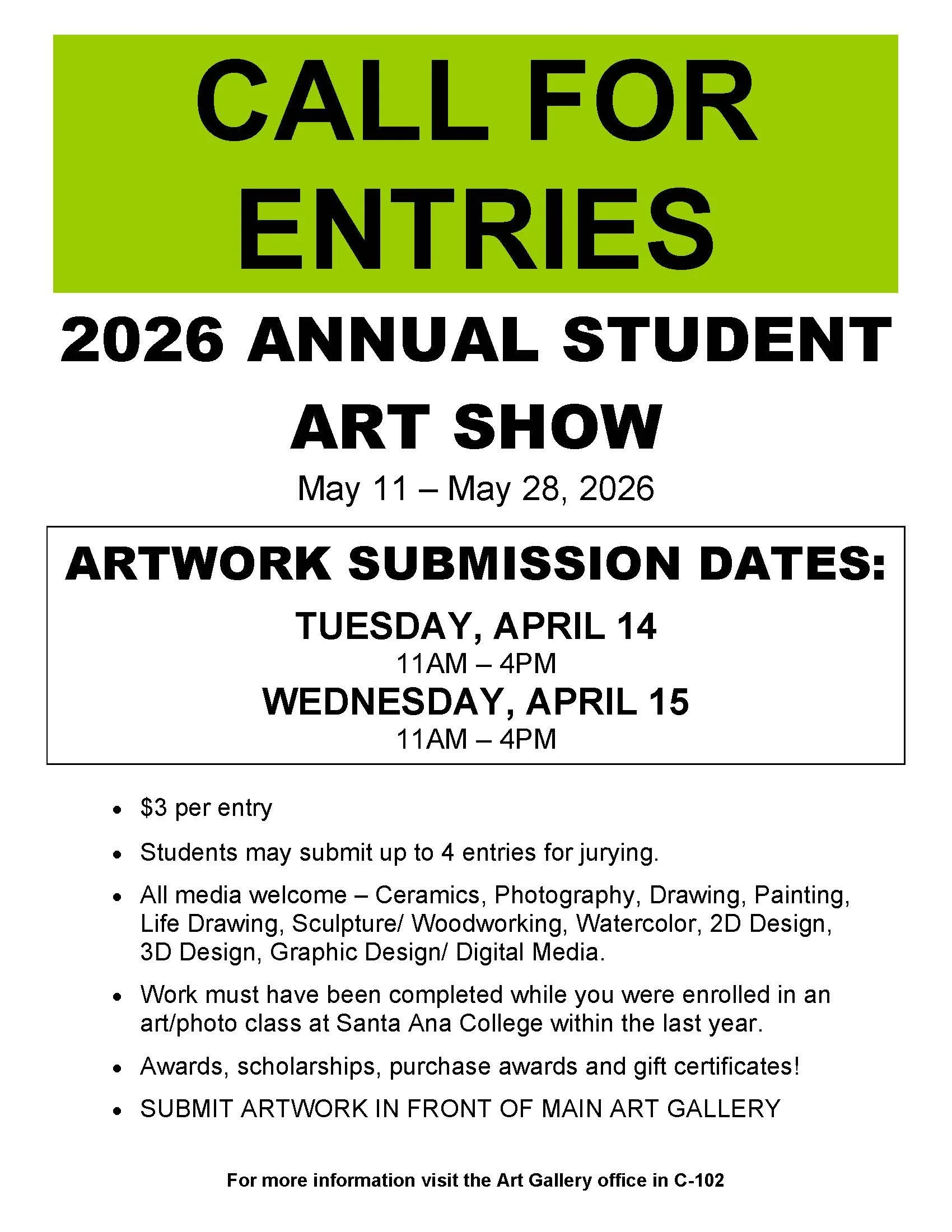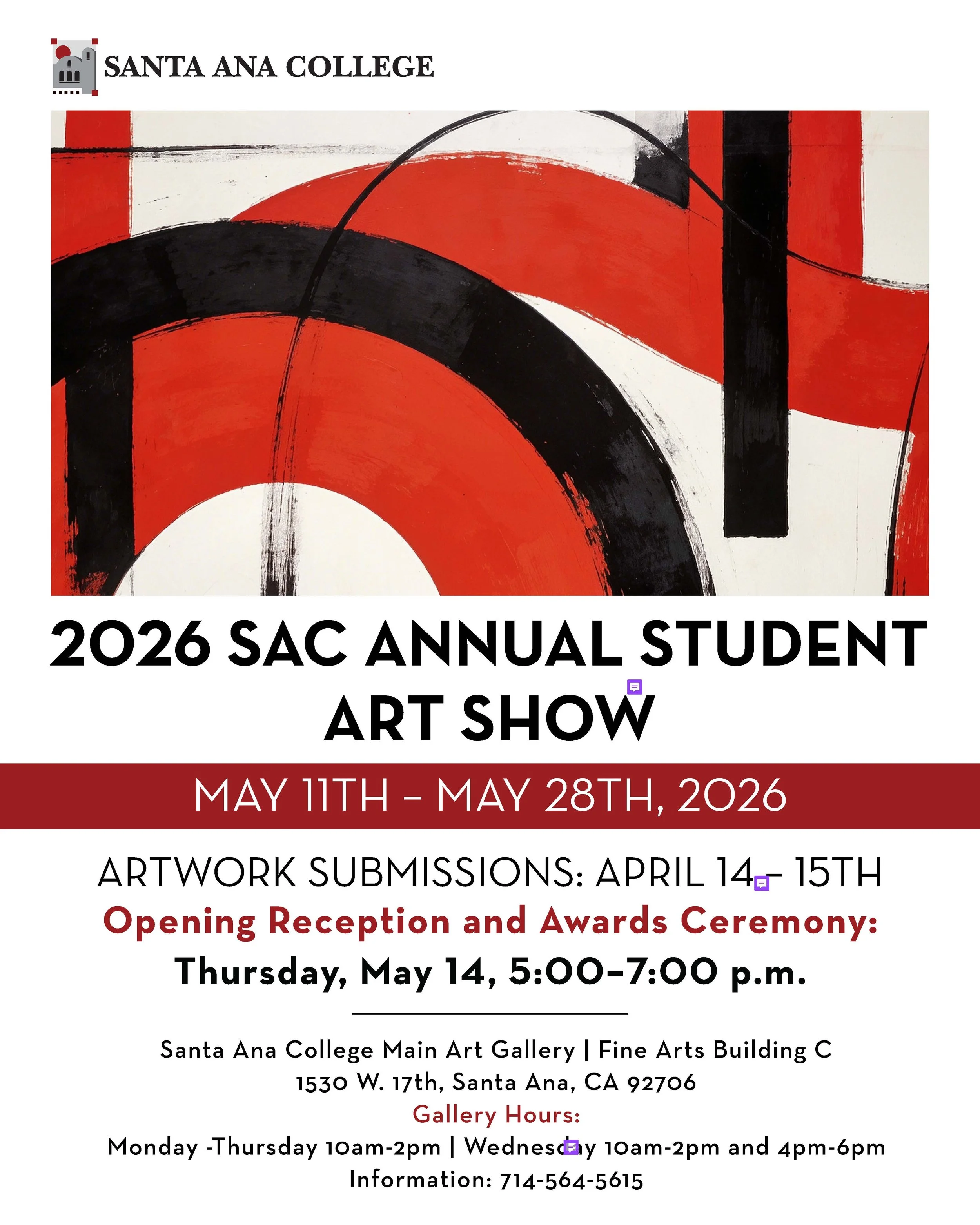Santa Ana College is a comprehensive public institution serving a diverse population of over 25,000 students from the surrounding area. The gallery program is designed to meet the needs of this population.